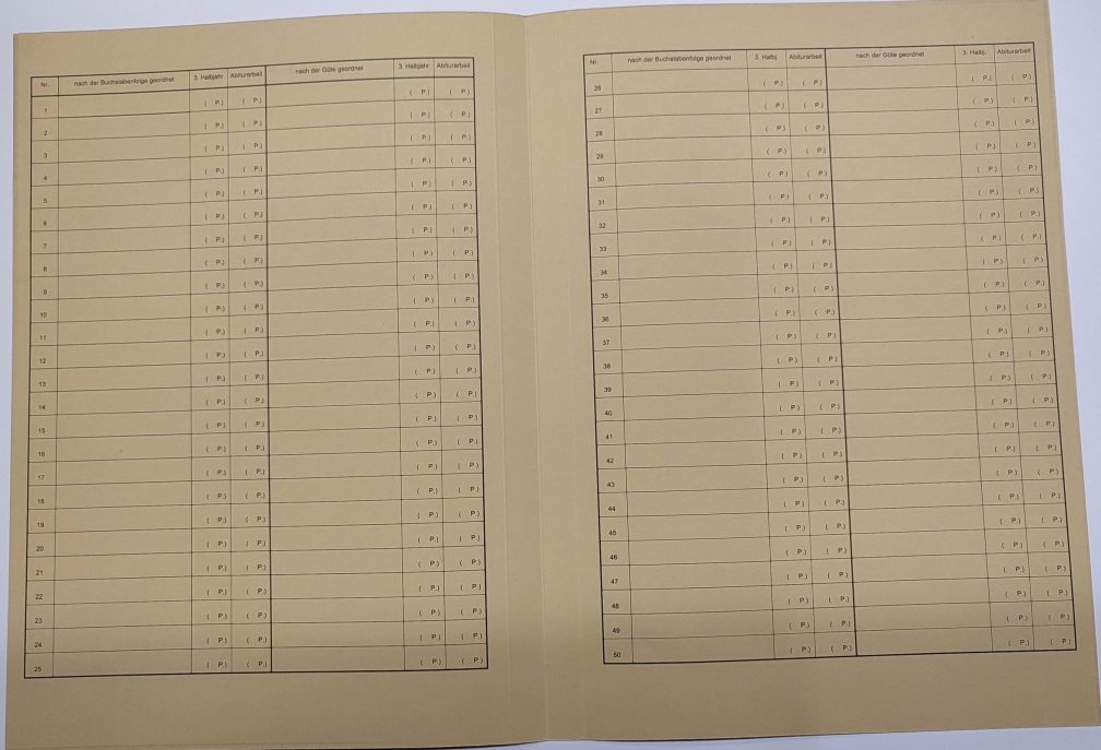 Genutet, mit Benotungsspalten.