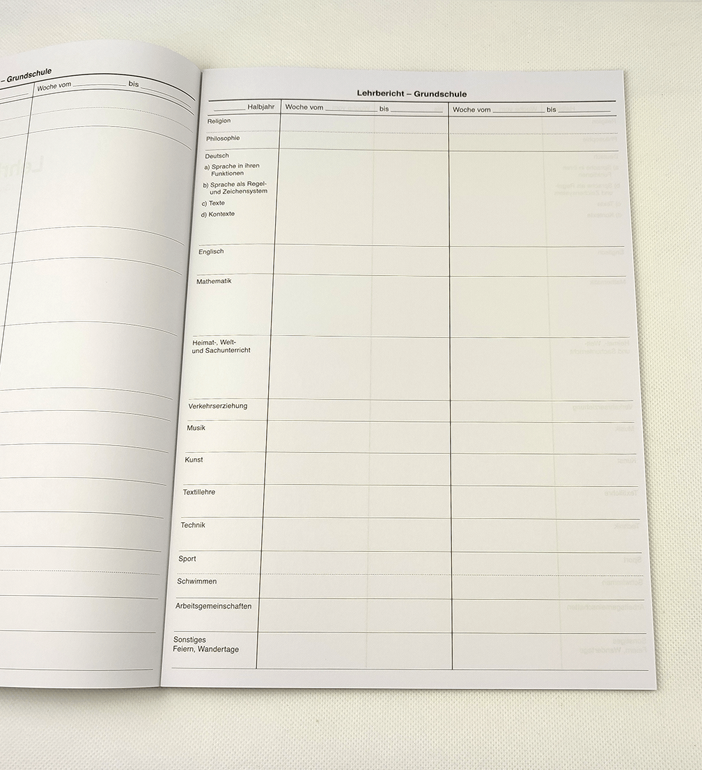(Grundschulbereich) für wöchentliche Eintragungen, kartoniert.