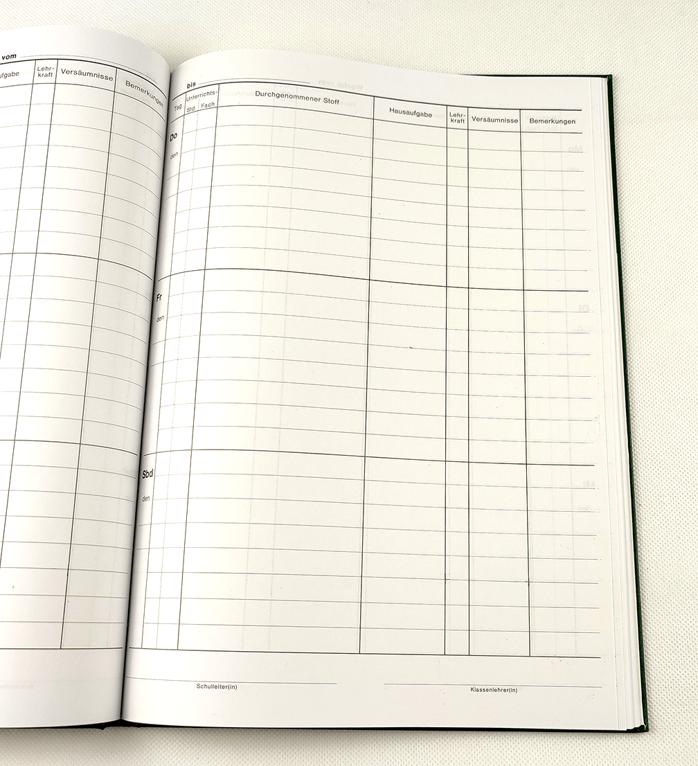 Für tägliche Eintragungen. Im Balacron-Einband und dadurch sehr stabil und abwischbar. Der Eindruck des Schulnamens ist kostenlos möglich.