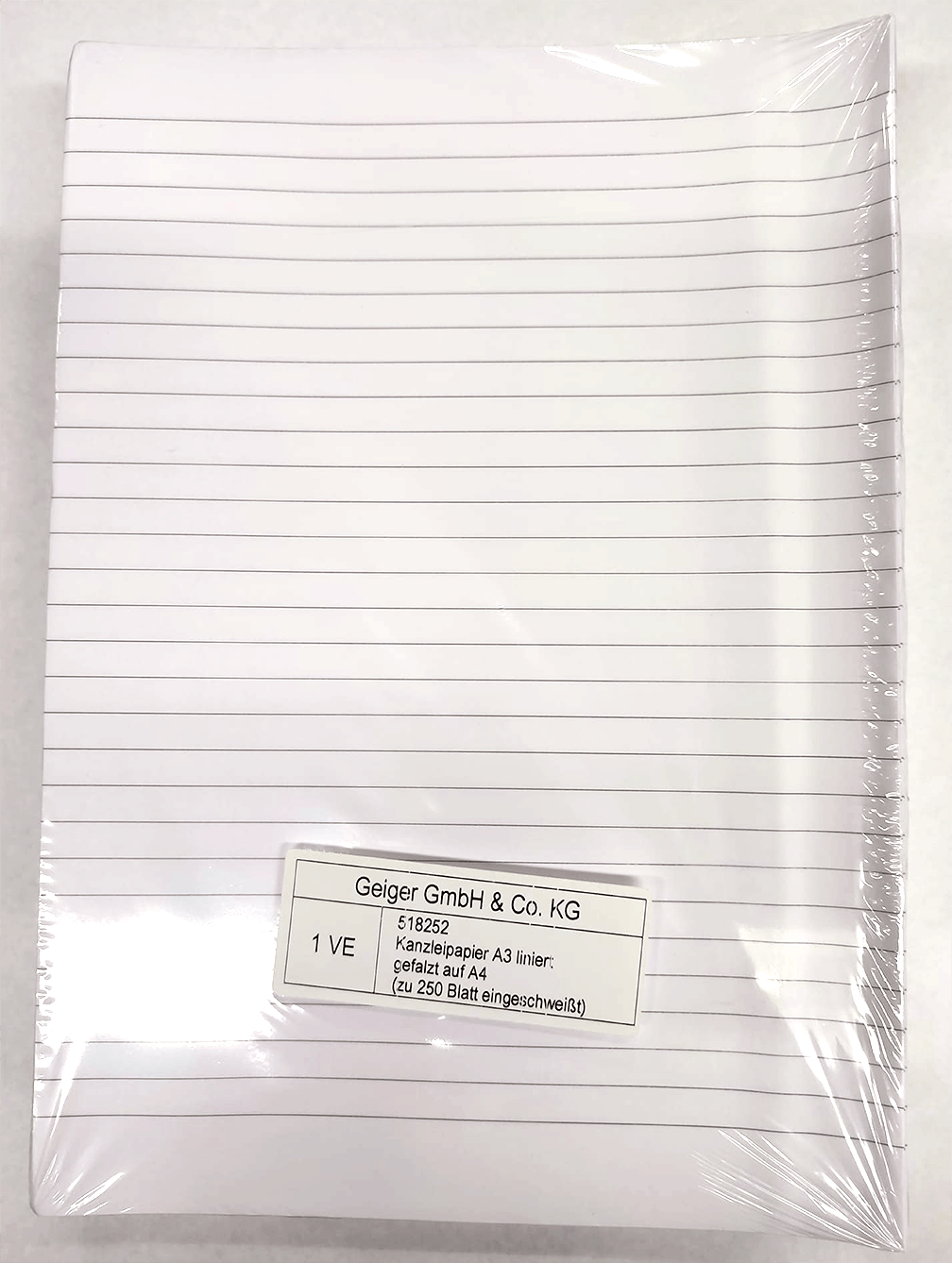 250 Blatt satiniert liniertes Kanzleipapier auf A4 gefalzt