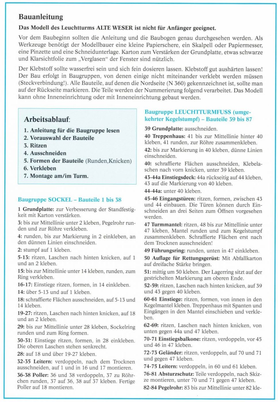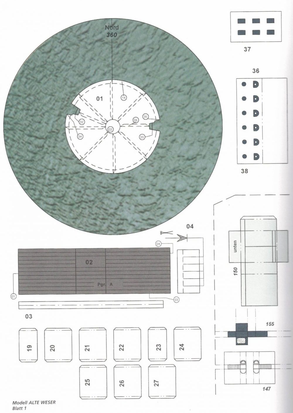 Bauen Sie mit Ihrer Klasse den Leuchtturm “Alte Weser”. Mit Bauanleitung, Baugruppen, Modell mit 24 Seiten aus Karton, Maßstab 1:100.