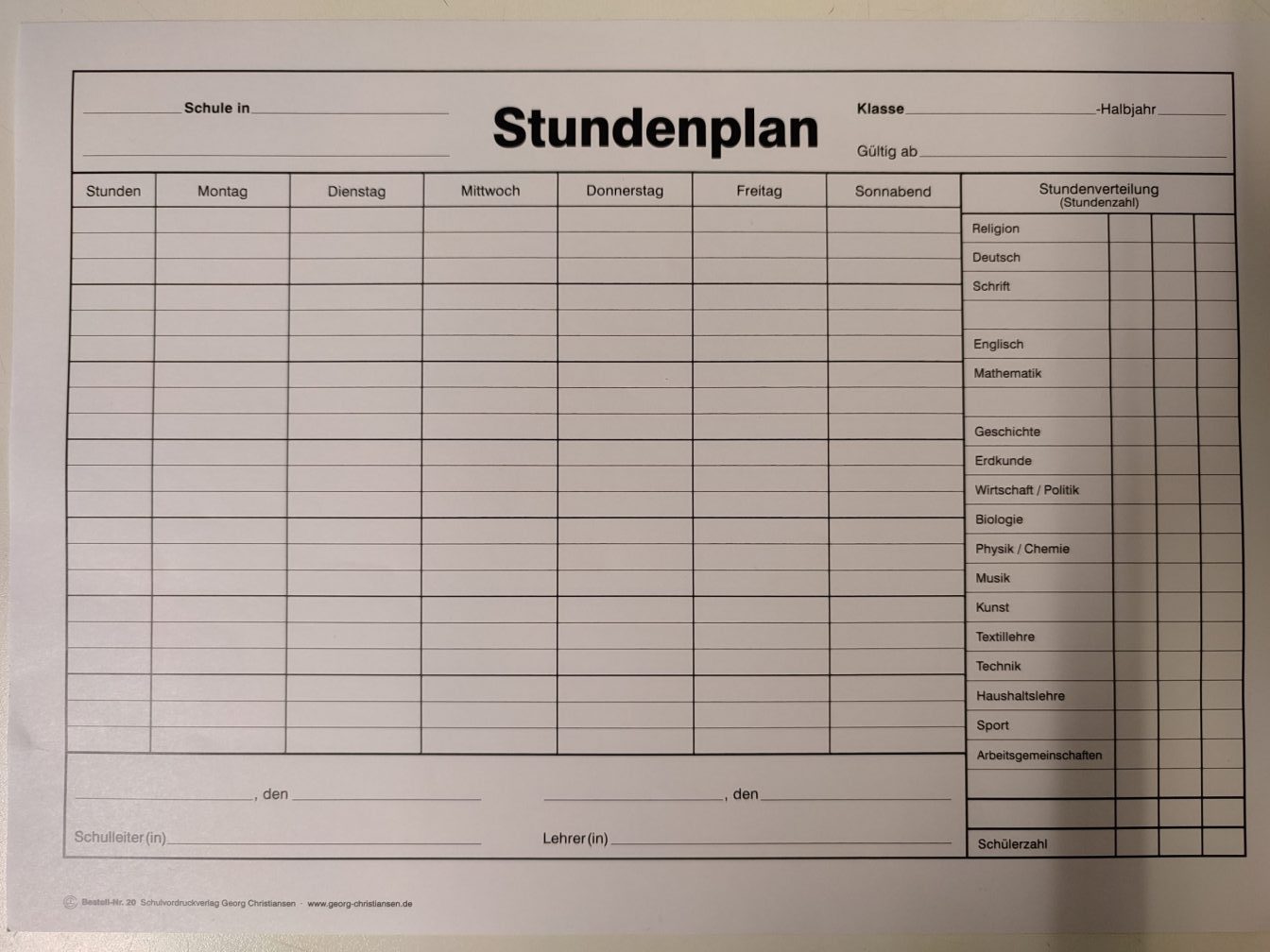 DIN A 4 quer, einseitig, Montag bis Sonnabend